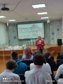 Специалистом Центральной библиотеки им. А.Н. Зырянова для учащихся Гимназии № 9 было проведено мероприятие хроника военной поры «По страницам блокадного Ленинграда».